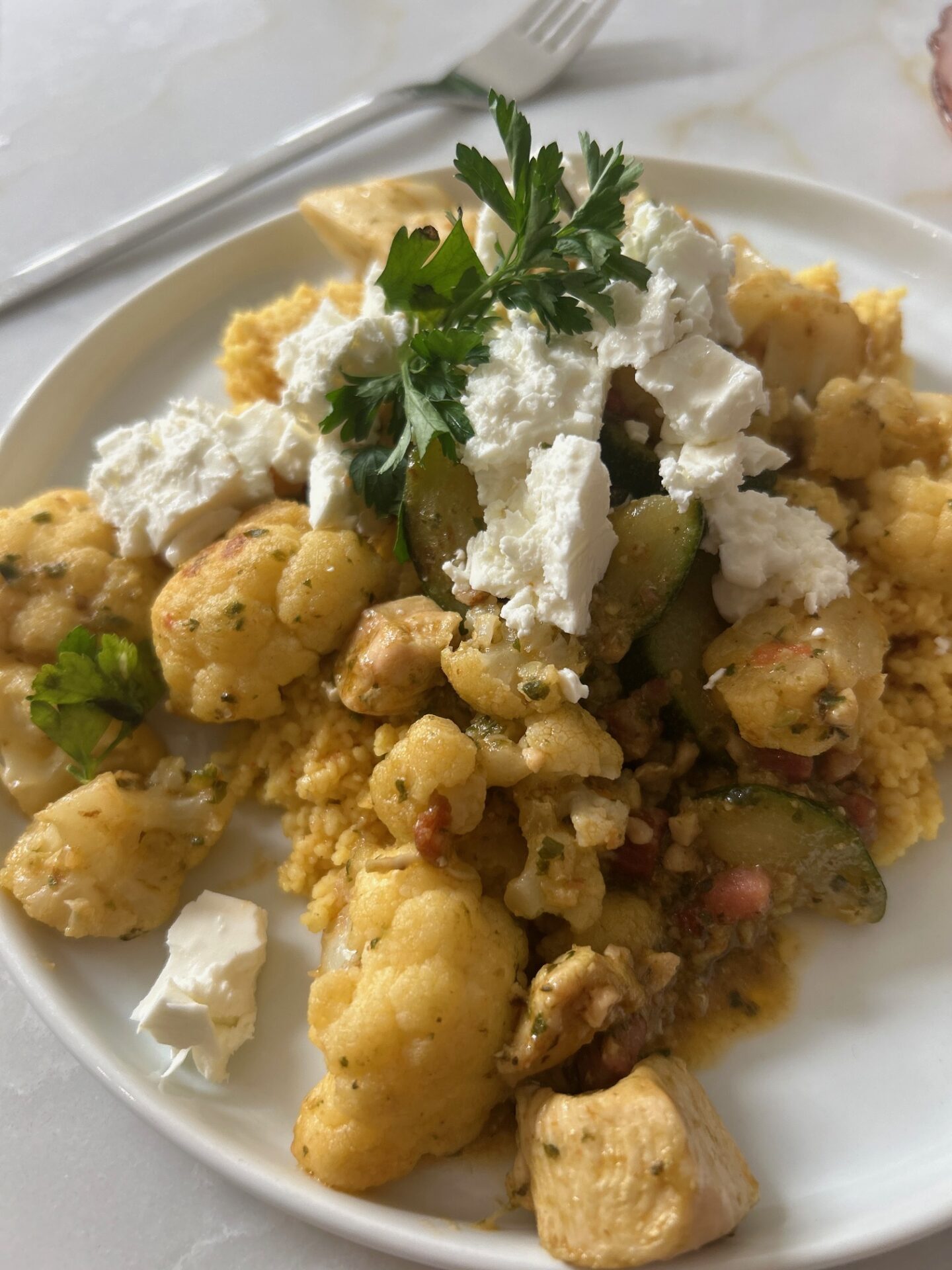 Het couscous recept van deze keer is direct een volledige maaltijd, want de gekruide couscous maakte ik compleet met lekkere dingetjes, zoals kip, bloemkool, courgette en feta. Het hele recept voor parelcouscous met bloemkool en kip, courgette en feta ga ik natuurlijk met je delen. Hier komt het!