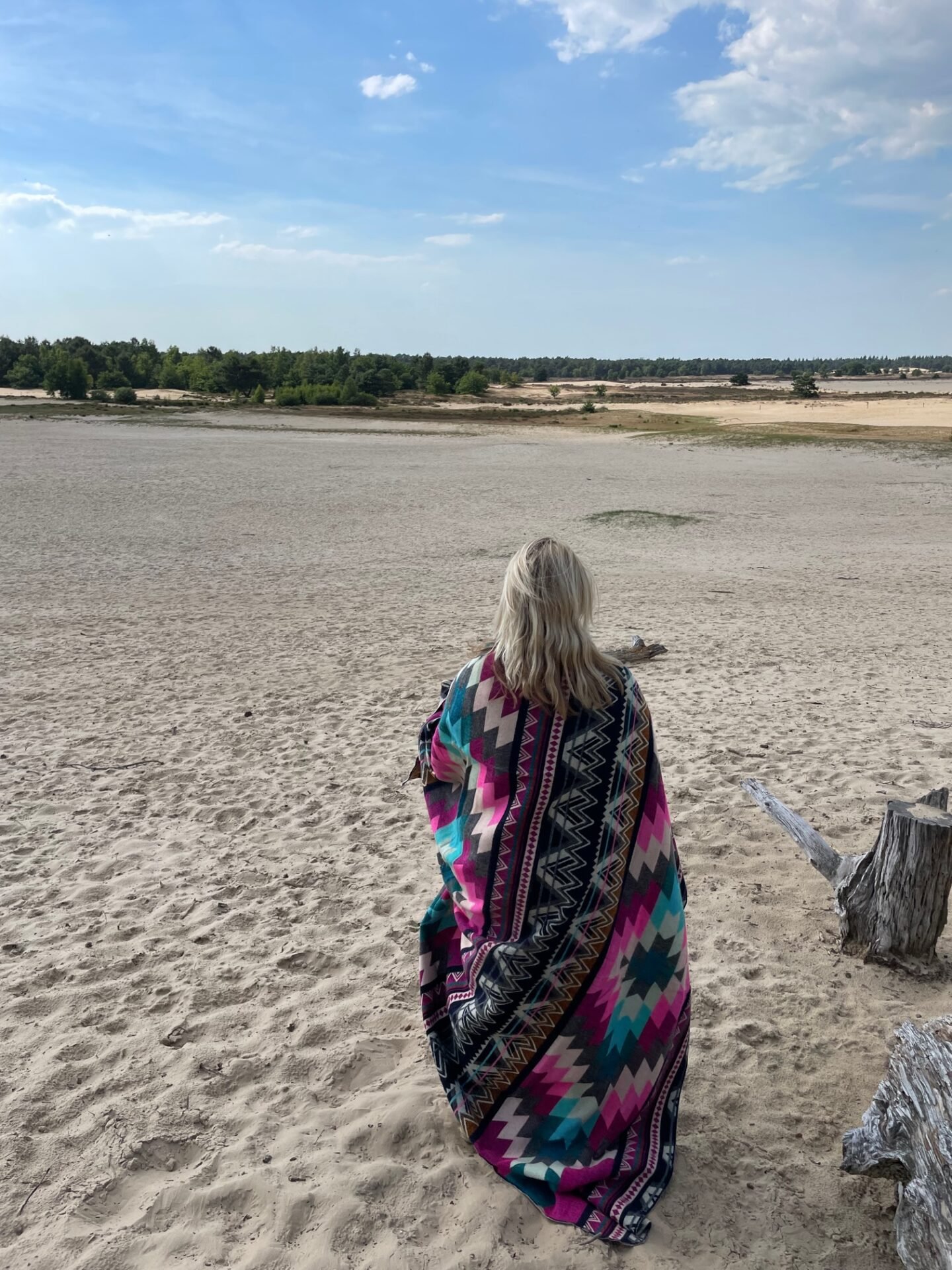De kinderen kunnen spelen in de Loonse en Drunense Duinen en ondertussen geniet ik van het prachtige wijdse uitzicht. Even relaxen en ontspannen. Het mooie picknickkleed van EcuFina is dan heerlijk om mee te nemen. Op warme dagen is het fijn om op te zitten, maar op koudere dagen is het picknickkleed uit Ecuador van alpacowol ook fijn om om te slaan als een verwarmend plaid. Door de alpacawol is het plaid heerlijk warm en de sprekende kleuren maken de picknickkleeden of plaids erg fashionable. Overigens heb ik gekozen voor roze tinten, maar er zijn veel meer keuzes. Dit is natuurlijk belangrijk, maar de EcuaFina producten komen wel naar Nederland vanuit Ecuador met een verhaal .