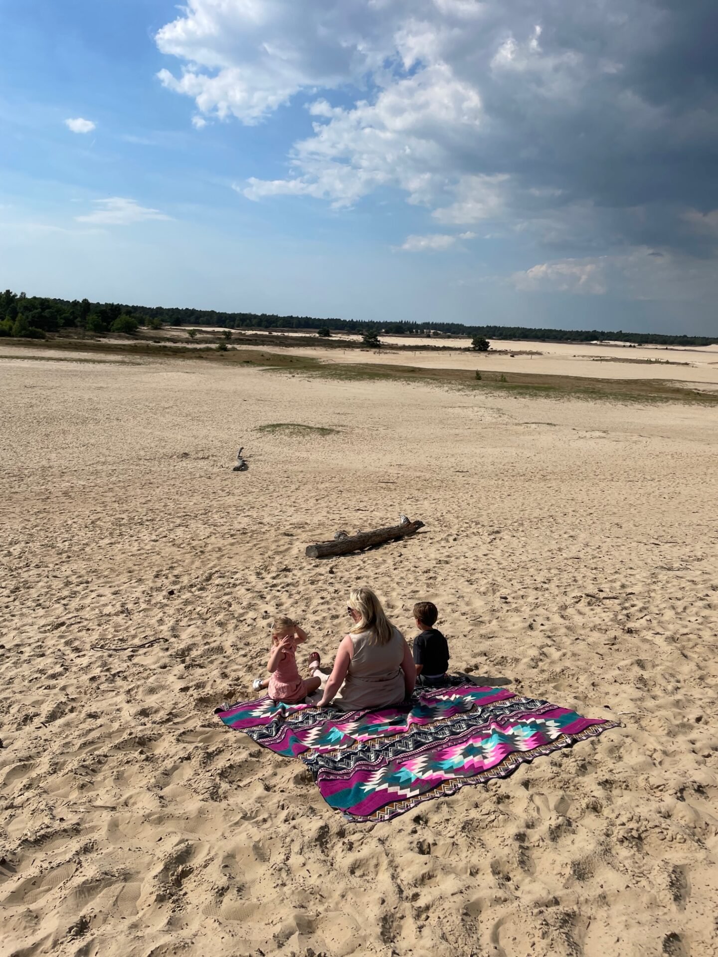 Toen ik in Haarlem woonde ging ik ook helemaal niet zo vaak naar het strand ook omdat ik een aantal jaar aan het strand werkte in een hotel en het na een werk week wel gezien had. Vooral de files naar Zandvoort toe. Nu mis ik het iedere dag. De frisse zeelucht en de zeewind. Zo gaat het. Maar ik heb nu wel een reden om vaker naar de Loonse en Drunense Duinen te gaan, want ik heb een prachtig nieuw picknickkleed van EcuaFina al staat het kleed uit Ecuado ook prachtig in huis op onze bank of op het bed van onze dochter. Mooie sprekende kleuren, een groot formaat waar je met het gezin op kunt zitten en heerlijk zacht door de Alpaca wol. Een echte aanwinst en zowel fijn om mee te nemen op warme en koude dagen.